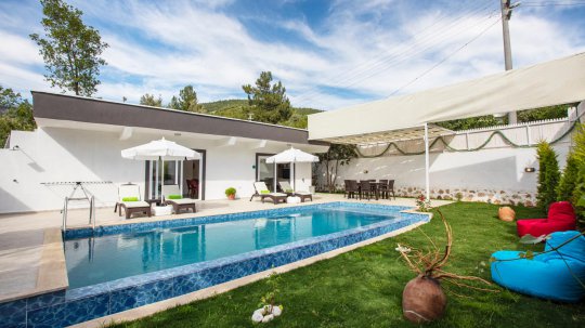 Villa Başak is located in Antalya / Kalkan / Üzümlü Village. It has a capacity of 4 people, 2 bedrooms and 1 bathroom. The pool of the villa is sheltered.