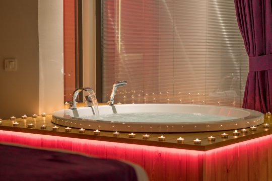 The pool of the villa is sheltered and has sea view. There is a jacuzzi in the master bedroom of the villa.