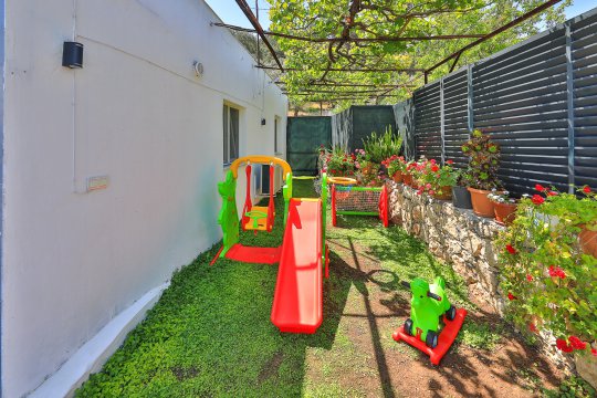 The villa has 2 bedrooms and 2 bathrooms. The master bedroom has a jacuzzi. The pool is sheltered.