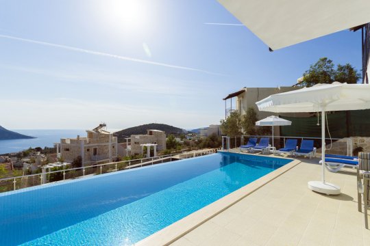 The villa sleeps 12 and is stylishly furnished and enjoys stunning views of Kalkan Bay and the islands