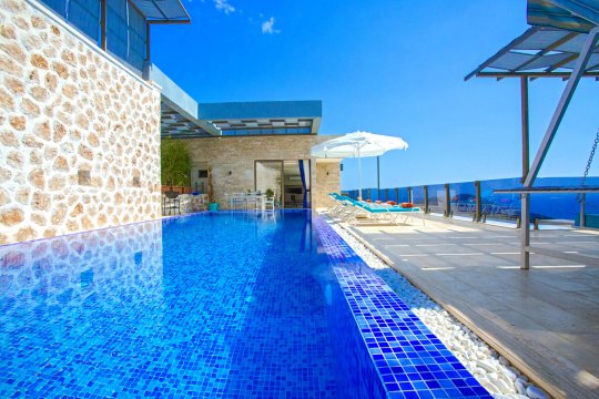 Villa White House is located in Antalya/Kalkan/Kördere region. It has a capacity of 6 people and has 3 bedrooms. The pool is sheltered and there is a children's pool for our child guests.