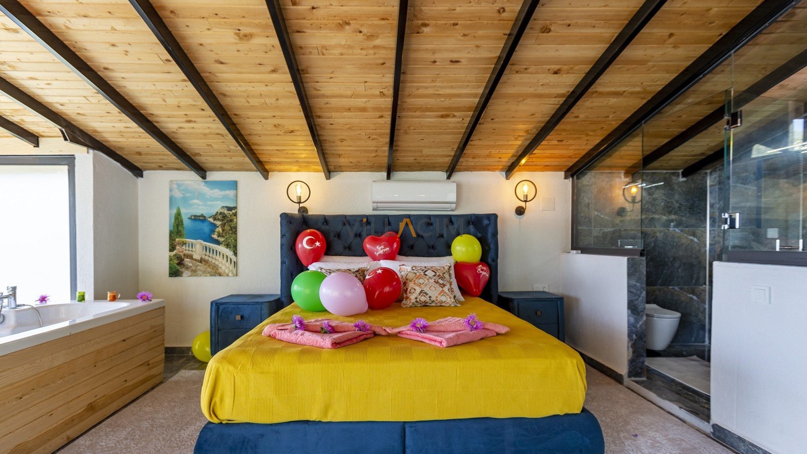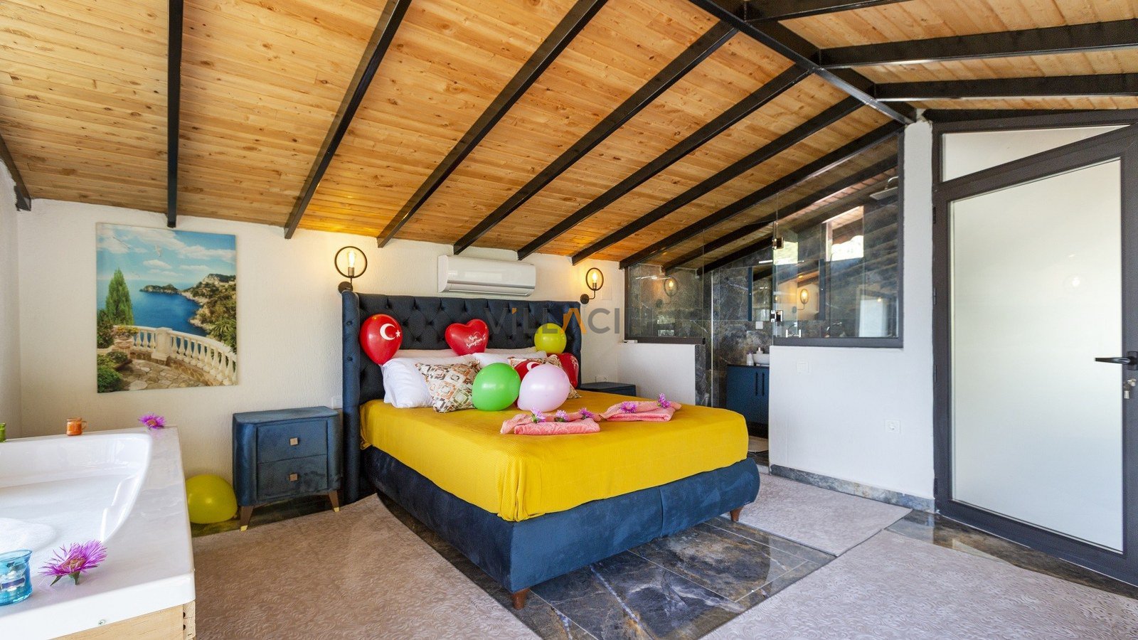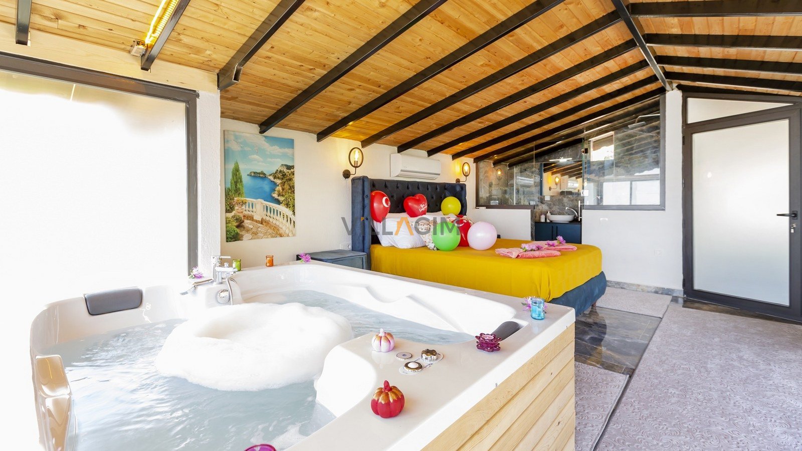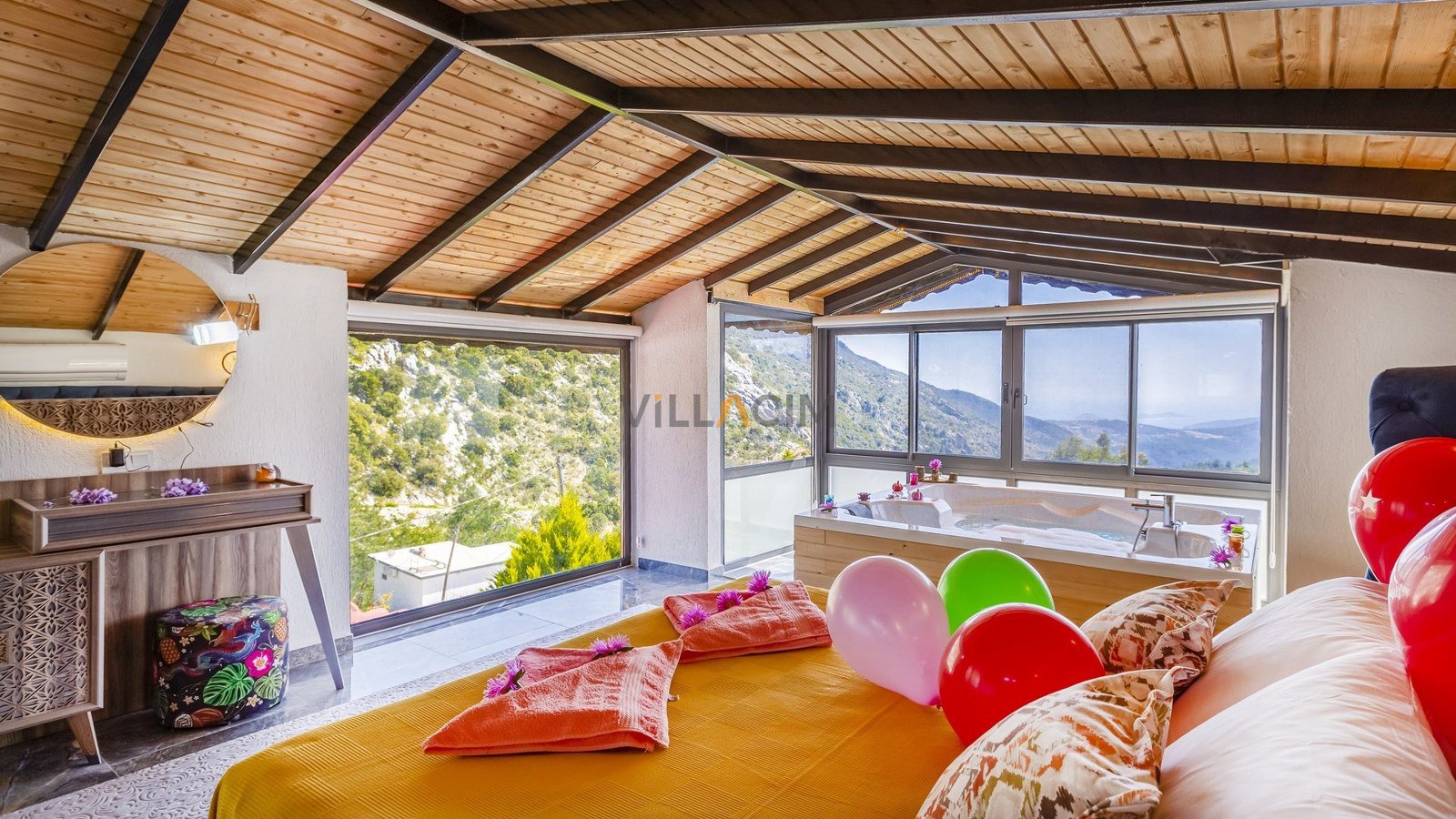VillaIrmakhas a master bedroom with a jacuzzi bath and a double which also has a jacuzzi!