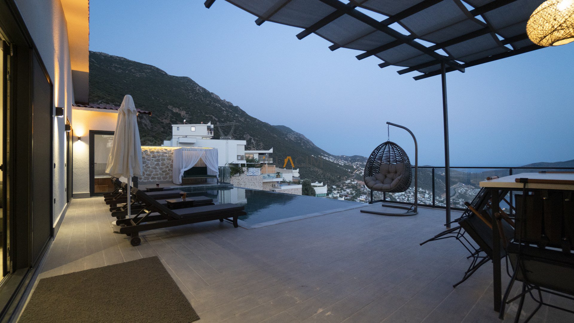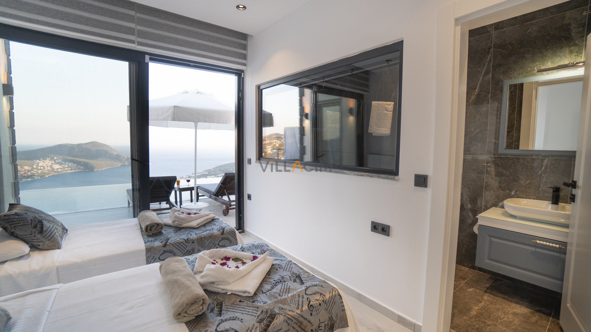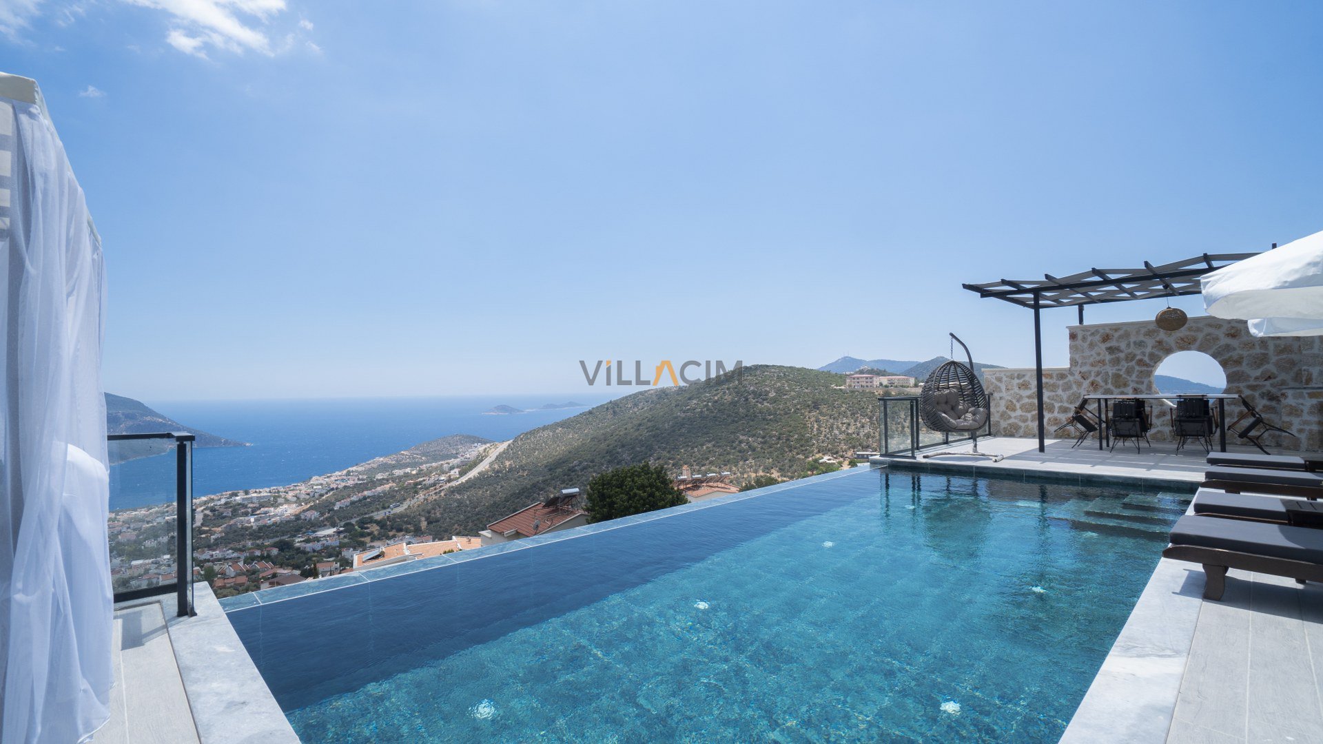Villa Efe Akbel is holiday villa for 4 people located in the Akbel Region of Kalkan. There are 2 bedrooms and 2 bathrooms in this villa. Villa has a hammam and sauna and has a unique sea view. It is a very suitable holiday villa for our honeymoon couples and families.